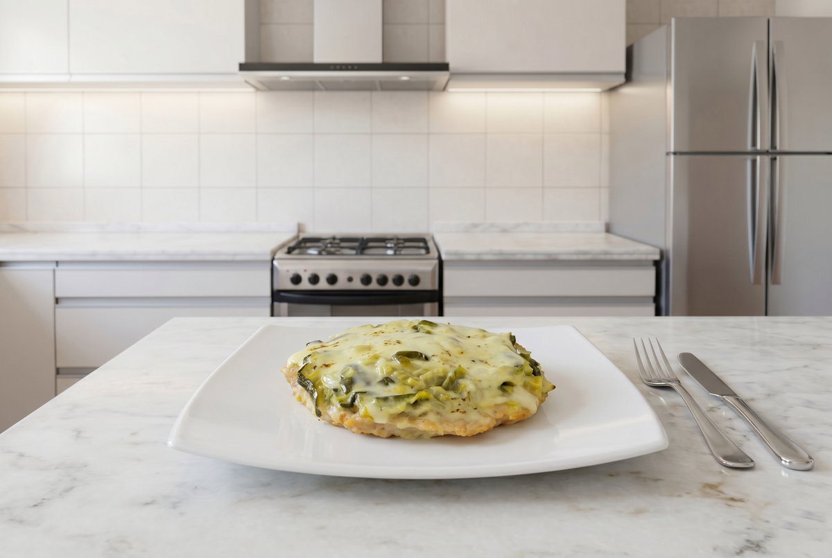 INGREDIENTES: Base de pechuga procesada, cebolla, morron, zapallito, huevo y queso port salut.